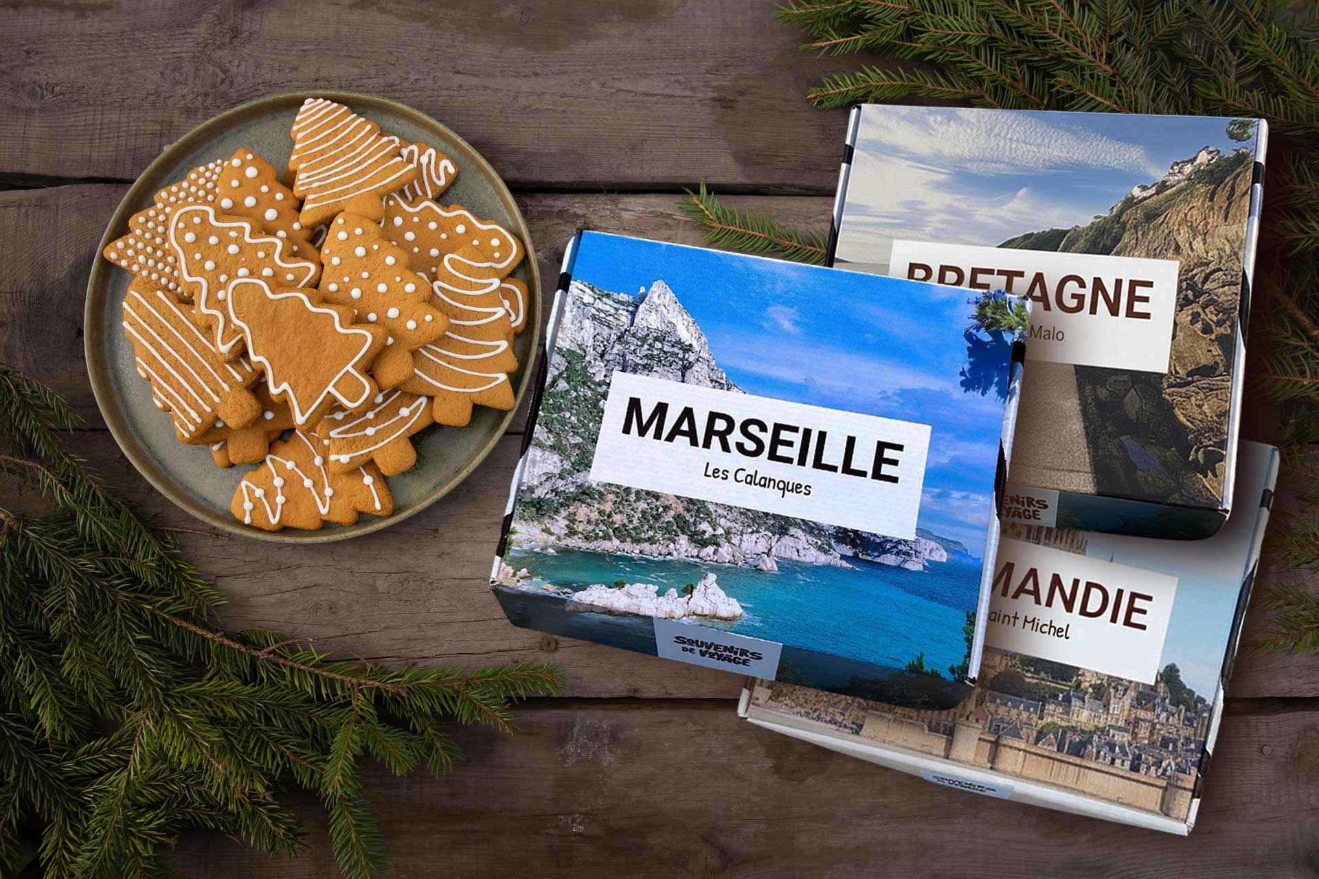Chaque coffret est une invitation au voyage, une boîte à trésors remplie de souvenirs de vacances, d’objets souvenirs authentiques et de découvertes insolites.